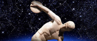 Самая известная греческая скульптура атлета в действии датируется примерно сорока годами после первой сохранившейся натуралистической мужской обнаженной натуры. Это метатель диска (Дискобол) Мирона, в котором напряженное тело обнаженного атлета, кажется, всегда готово запустить диск вдаль.