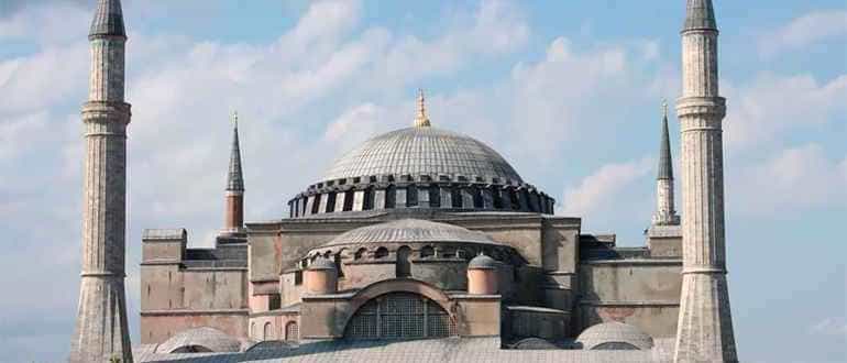 В Святой Софии в Константинополе (построенной поразительно всего за пять лет) архитекторы Юстиниана, с триумфальным мастерством достигают нового и трудного технологического подвига, размещая огромный круглый купол на вершине квадрата, образованного четырьмя арками.