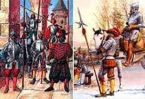 Швейцарцы принимают греческое образование фаланги, плотно сплоченного квадрата мужчин. И они заимствуют у армий Александра Македонского исключительно длинное копье, которое мешает врагу приблизиться.