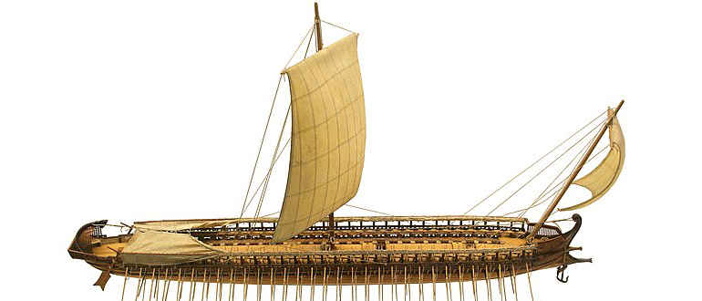 Трирема — это судно, использованное в первой войне, исход которой во многом решился благодаря военно-морской мощи — конфликте V века до н.э. между греками и персами. Ко времени Пунических войн галеры стали еще больше.