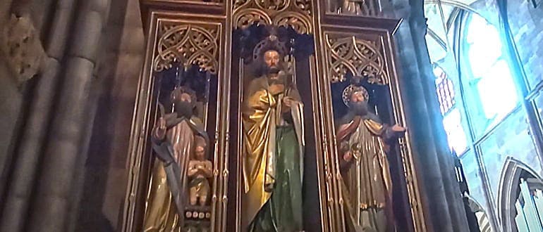 В интерьере здания сохранилось несколько групп не менее известных скульптур. Во-первых, это рельефы старого хорового экрана, на котором изображены беседующие пары апостолов (юг) и пророков (север). Их первоначальное расположение и стиль, которые принадлежат первой скульптурной мастерской, указывают на художественный прогресс, возможно, связанный с контактом с ювелирами, кульминацией которого являются самые последние барельефы пророков и Благовещение, несмотря на общие черты группы, общие для всех, такие как расположение фигур и криволинейное движение складок драпировки.