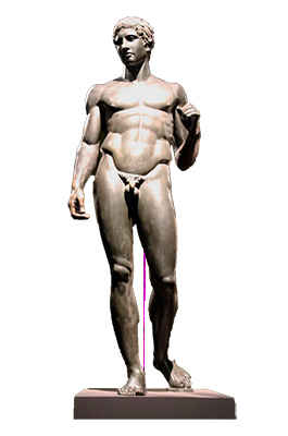 Стоящий обнаженный мужчина нашел классическое решение в Дорифоре, или Копьеносце Поликлета, созданым, возможно, около 440 года до н. э. и одном из любимых сюжетов для подражателей в римские времена. Оригинал, у которого не было ствола дерева, был сделан из бронзы и чуть ниже семи футов высотой, за исключением копья, которое покоилось на левом плече и держалось в левой руке. Это, как выясняют более поздние авторы, была самая известная работа Поликлета и, возможно, «канон», который был проанализирован в его трактате. И это важно, как для не дифференцированного характера многих классических скульптур, так и для преобладания эстетического отношения к искусству, что эта статуя стала известна под описательным именем и что мы не можем сказать, какого бога, героя или человека она представляла.
